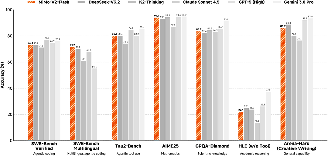 这一年,小米对外开源了MiMo-V2-Flash。它是一款3090亿总参数、150亿激活参数的MoE大语言模型,用的是混合注意力架构和多层多token预测,在多项Agent评测中进入全球开源模型前二。